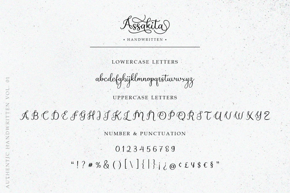 Assakita is simplifies elegance into one truly outstanding handwritten font. It maintains its classy calligraphic influences while feeling contemporary and fresh. This versatility will appeal to a wide range of crafty ideas, from letterheads and titles, to stationery.