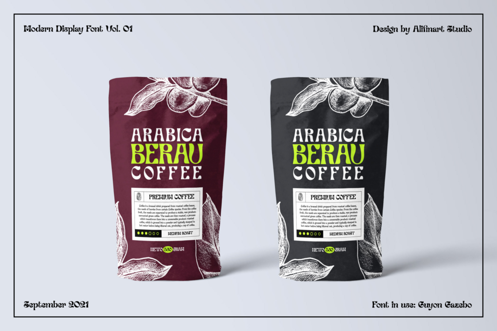 With its high contrast strokes, slender stem, and pointed terminals, Guyon Gazebo exudes sophistication and charm. Let your creativity flow as you explore the extensive collection of standard and discretionary ligatures, ensuring your designs are irresistibly attractive and visually stunning.