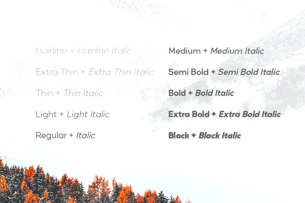 Moreover, the complete family package includes hairline to black variables and for this reason, Mustica Pro is perfect to serve as the mainstay font for various design and commercial projects.