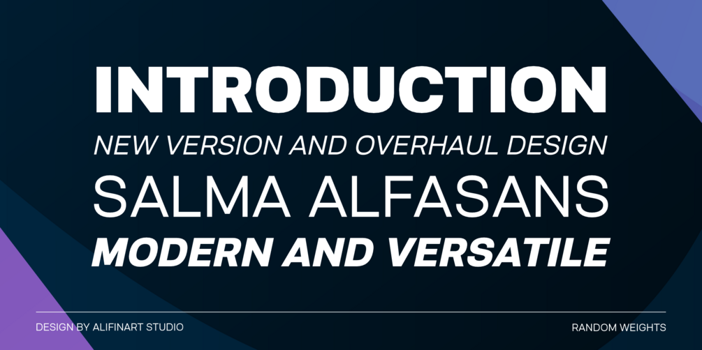 Salma Alfasans is a modern sans serif font, created on February 25, 2021. The main inspiration for this font is its modern geometry and bold design, but looks elegant and smooth.