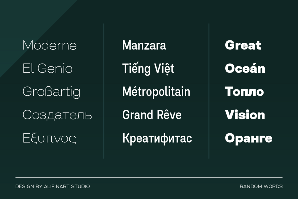 - Language support: Salma Pro supports Latin Extended, Cyrillic, and Greek languages, making it a great choice for projects with a global audience.